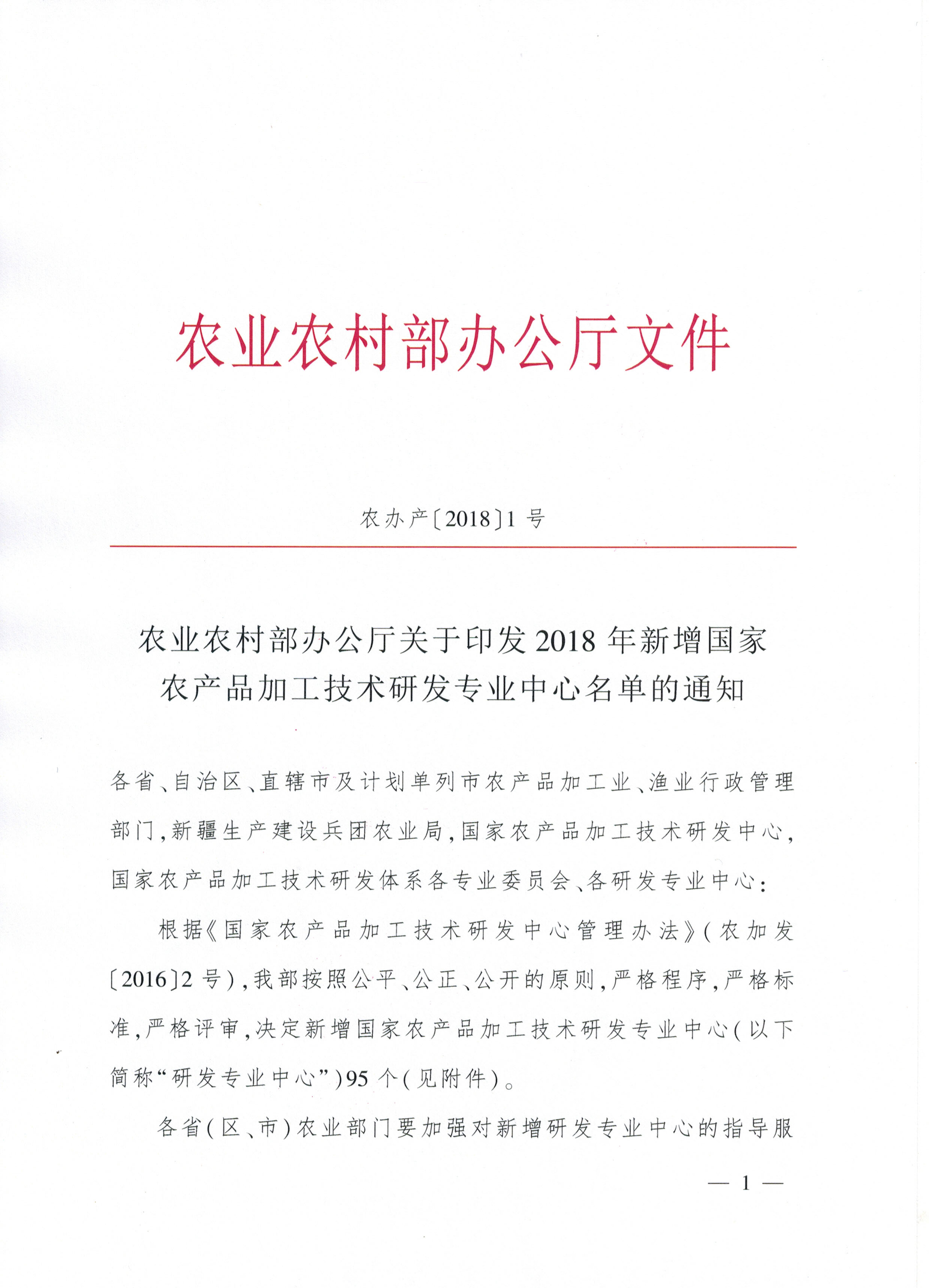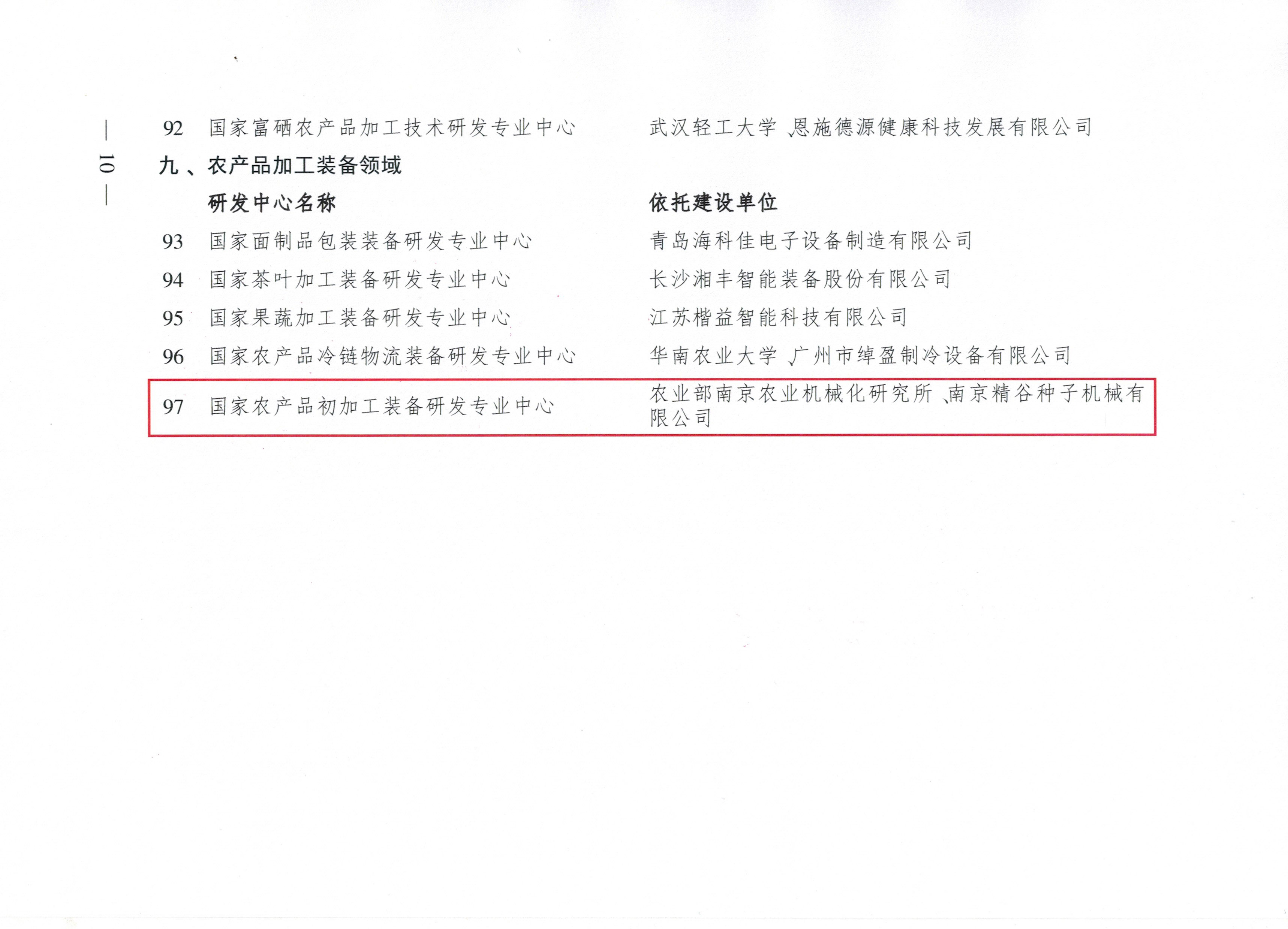 近日,農(nóng)業(yè)農(nóng)村部公布了2018年新增國家農(nóng)產(chǎn)品加工技術研發(fā)專業(yè)中心名單,依托南京精谷種子機械有限公司建設的“國家農(nóng)產(chǎn)品初加工裝備研發(fā)專業(yè)中心”榜上有名。據(jù)了解,此次全國共批復建設國家農(nóng)產(chǎn)品加工技術研發(fā)專業(yè)中心95個,依托127家單位建設。該中心的批復也是我公司首次獲得的農(nóng)業(yè)部平臺建設,是南京精谷種子機械有限公司在省部級科技創(chuàng)新平臺建設方面取得的又一重大成果。
